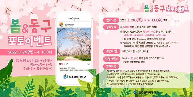 광주시 동구는 봄을 맞아 동구 공식 인스타그램 계정을 통해 ‘봄&동구 포토이벤트’를 진행한다고 밝혔다.