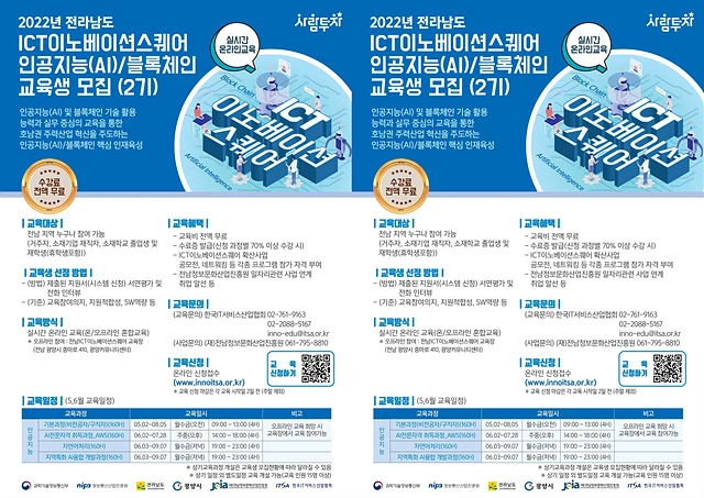 인공지능(AI), 블록체인 교육비 전액 지원, 수료자 취업 연계