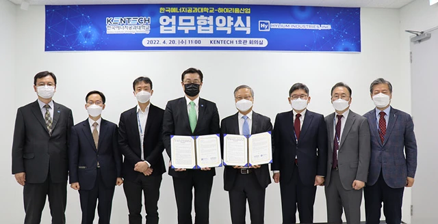 한국에너지공과대학교 (총장 윤의준, KENTECH)는 20일 하이리움산업(주) (대표이사 김서영)와 수소 액화 인프라 구축 협력 사업을 위한 업무협약을 체결했다고 밝혔다.