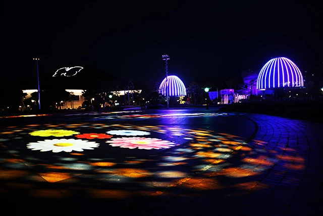 꽃과 나비로 가득 찬 축제장은 밤이 되면 아름다운 야간경관 조명으로 눈부시게 빛난다. 엑스포공원 일원에 꽃과 함께 장식된 야간경관 조명이 더해져, 형형색색의 빛으로 수놓인 색다른 모습의 엑스포 공원을 만나볼 수 있다.