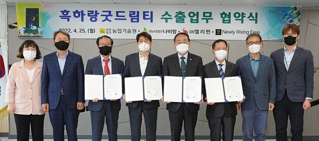 이날 협약식에 참석한 영농조합법인나비팜 김철환 대표는 “흑하랑 가공제품 대량생산을 위한 원료 공급이 원활히 이루어져서 기업체와 함께 성장할 수 있도록 하겠다며, 공동생산자 연합회를 통해 원료 수급을 조절해 나가가겠다”고 말했다.