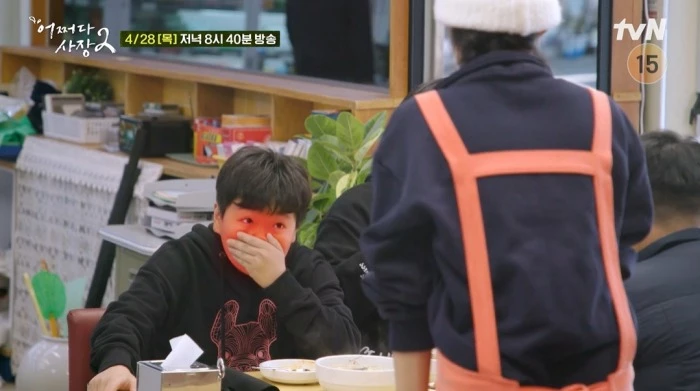 재률이는 "원래 매운 거 진짜 잘 먹는다"며 비빔밥을 한술 가득 퍼서 입 안에 넣었다. 친구들의 재촉에 김치 비빔밥을 씹기 시작한 재률이는 '극강'의 매운맛을 느끼고 곧바로 얼굴을 일그러트려 웃음을 유발했다.