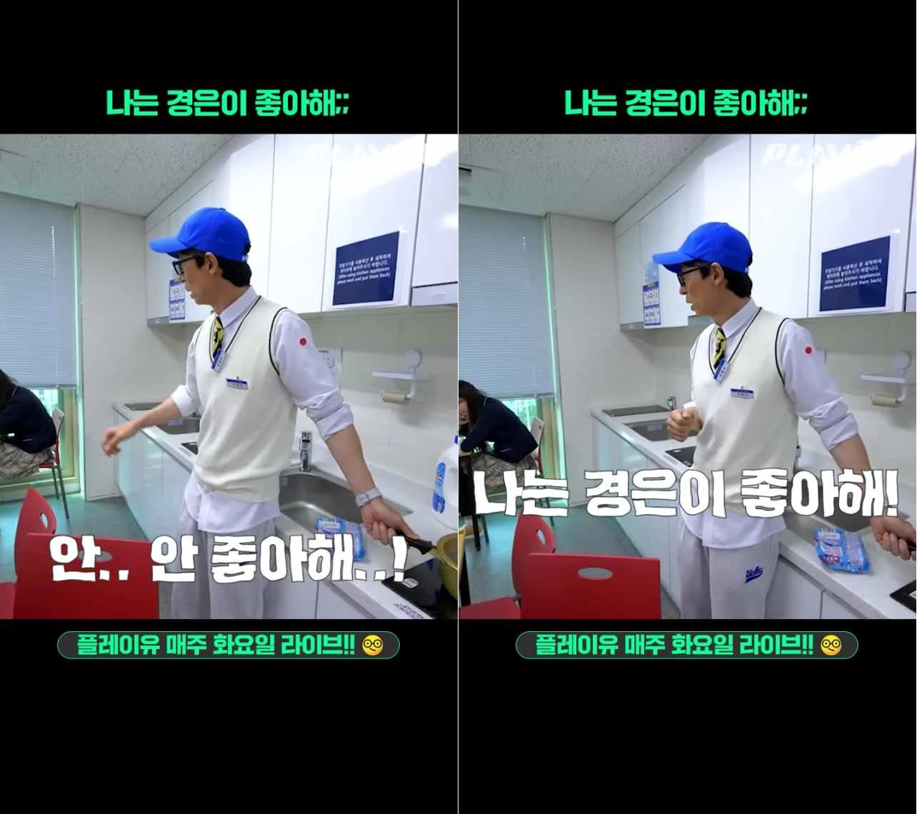 유재석과 같은 공간에서 공부하는 학생 연기를 하고 있던 출연진은 유재석에게 “시끄럽다”며 짜증을 냈다.