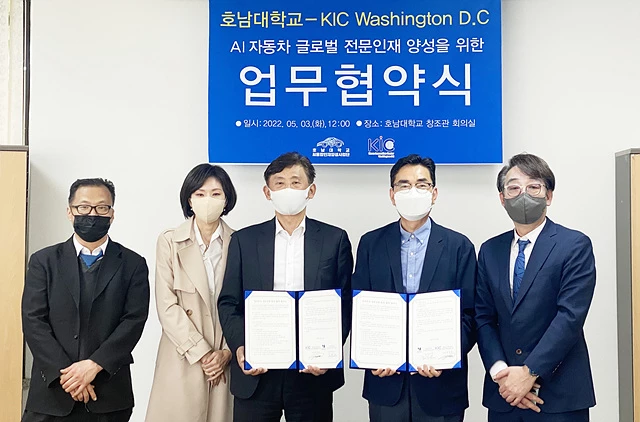 호남대학교 AI융합인재양성사업단(단장 정영기)은 5월 3일 교내 창조관 회의실에서 미국 Korea Innovation Center Washington(이하 KIC Washington)과 글로벌 AI 자동차 전문인재 양성 및 산업연계 교육활성화를 위한 업무협약을 체결했다.