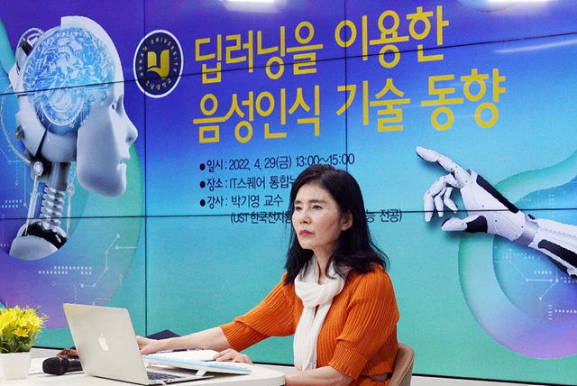호남대학교 교수와 컴퓨터공학과 3, 4학년 학생 등 120여명이 ZOOM 접속한 이날 강연에서 박기영 교수는 음성 인식의 정의와 Sequence to sequence model, 종단형 음성인식기술 기초부터 구현과정을 설명했다.