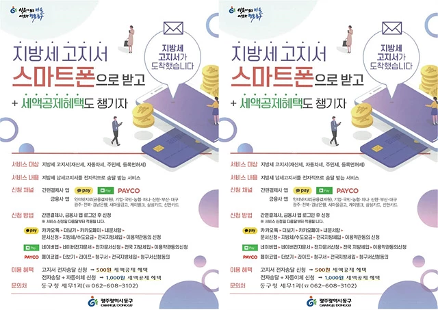 광주시 동구는 주민들의 지방세 납부 편의를 높이고 세액공제 혜택을 늘리는 ‘고지서 전자송달 서비스’를 5월부터 확대 시행한다고 밝혔다.