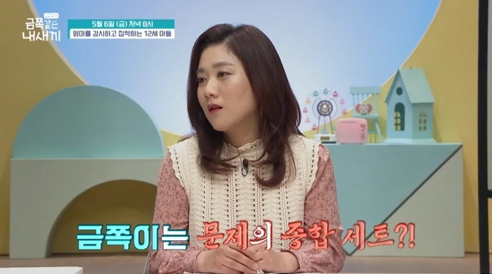 6일 방송되는 채널A 예능 '요즘 육아 금쪽같은 내 새끼'(이하 금쪽같은 내 새끼) 선공개 영상이 이날 네이버TV에 게재됐다. 본방송에 앞서 공개된 선공개 영상에서는 두 아들의 엄마가 등장해 "다른 집처럼 평범하지 않아도 어느 정도만 숨을 쉬고 살았으면 좋겠다"라며 호소했다.
