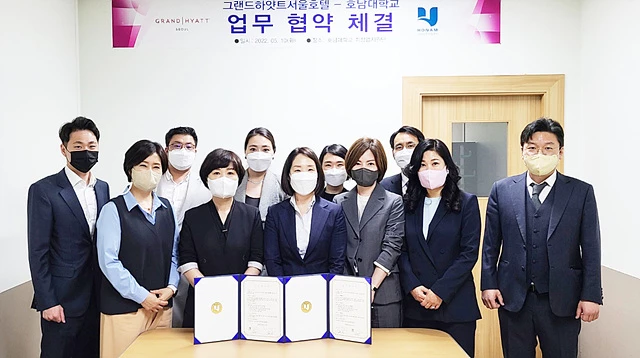 이날 협약식에는 호남대학교 김은아 취창업지원단장, 김성수 창업교육센터장과그랜드하얏트서울호텔 인사부 이지연 이사, 객실매니저, 조리파트 부총주방장 등이 참석했다.