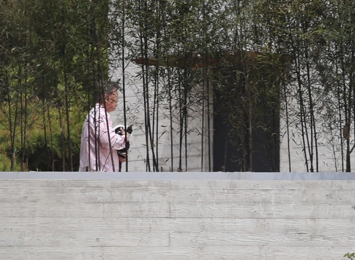 12일 오전 문 전 대통령 사저 내부에 전날인 11일까지 보이지 않던 가림막이 대나무 울타리 안쪽으로 설치됐다. 문 전 대통령 내외의 생활이 언론에 노출되자 사생활 보호를 위해 설치한 것으로 보인다.