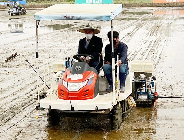 주요 행사내용을 살펴보면 농촌의 심각한 인구감소와 고령화에 따른 인건비 상승과 노동력 부족을 해결하고자 벼 생력재배 기술 보급으로 모판관주처리, 자율주행 이앙, 드문 모심기, 직파재배, 자율주행 드론방제 등 현장에서 시연 포퍼먼스를 진행 하였다.