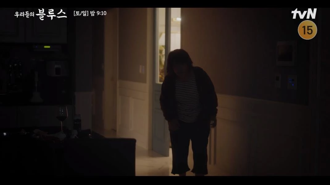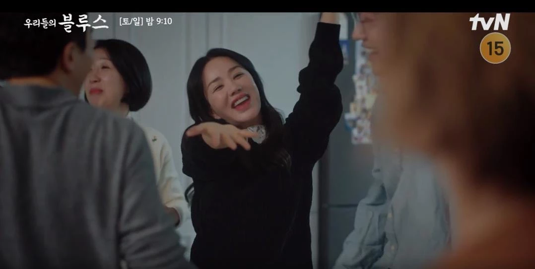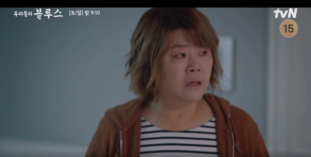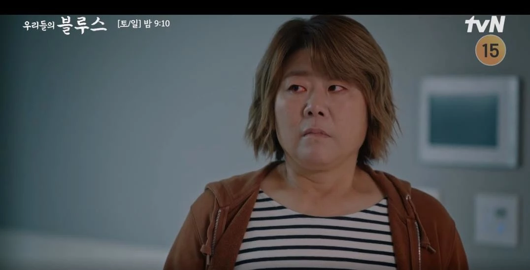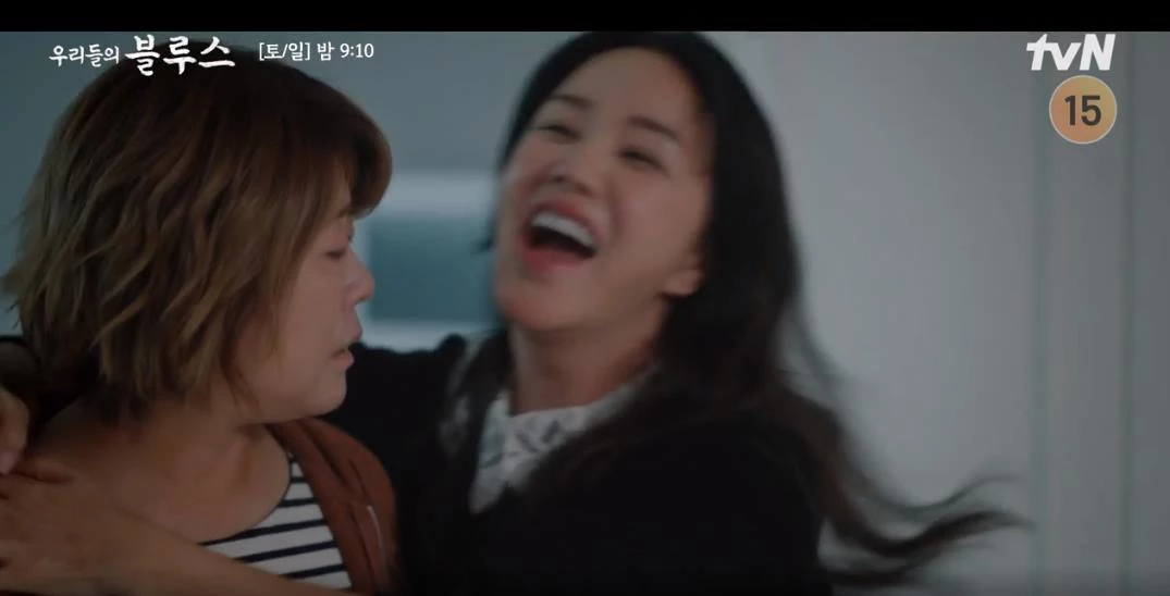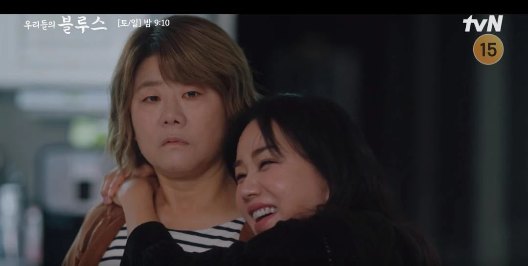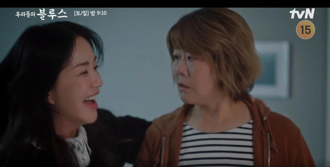 지난 15일 방송된 tvN 토일드라마 '우리들의 블루스'에서는 정은희(이정은 분)가 제주를 찾은 고미란(엄정화 분)을 보며 과거를 회상하는 장면이 그려졌다.