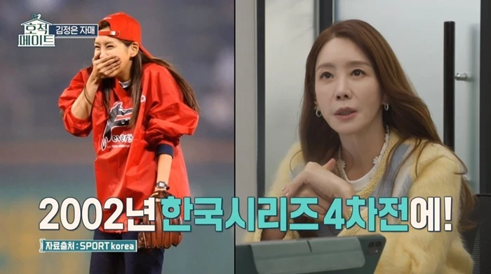 지난 17일 방송된 MBC '호적메이트'에서는 김정은이 시구에 나선 에피소드를 공개하는 모습이 그려졌다.
