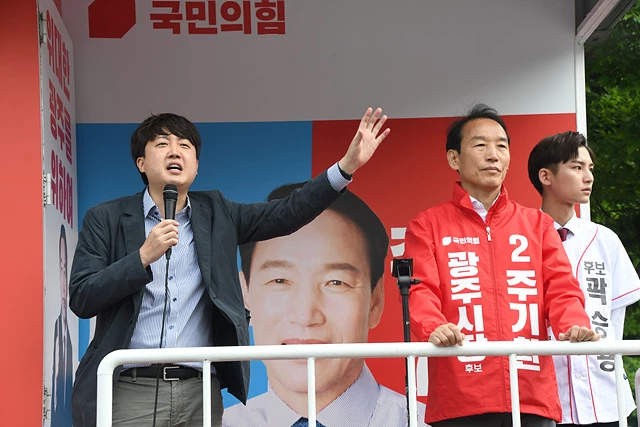 주기환 광주시장 후보 지원유세하는 국민의힘 이준석 대표