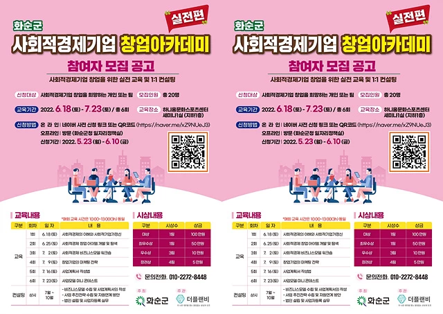 전남 화순군(군수 구충곤)이 사회적격제기업 창업아카데미 참여자 20명을 모집한다.