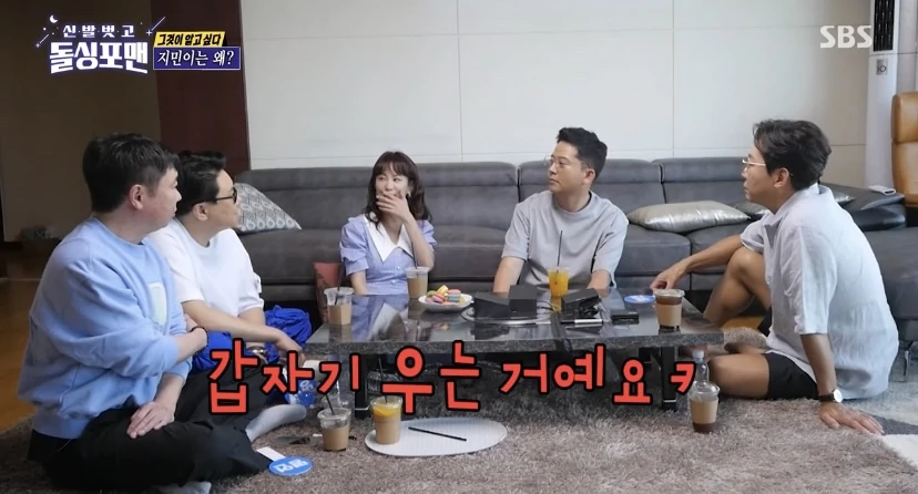 김지민은 "핸드폰 들고 있다가 웃겨서 계속 웃었다"며 "권상우 씨 소라게(드라마 속 명장면)처럼 '이렇게, 이렇게 행복해도 되나'라며 울더라"고 말해 모두를 폭소케 했다.