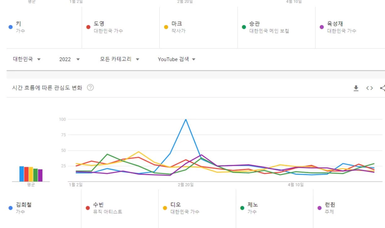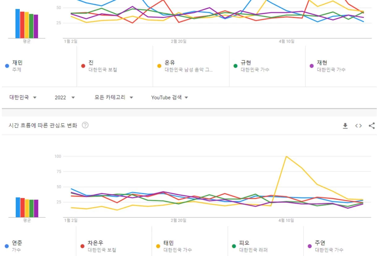 2022년 유튜브에서 가장 많이 검색된 남자 아이돌