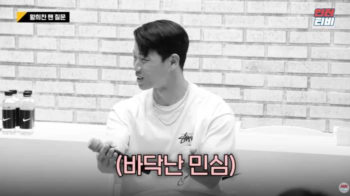 26일 유튜브 채널 ‘인터티비’에는 황희찬 팬미팅 하이라이트 모음 영상이 ‘황희찬이 말하는 깻잎 논쟁!’이라는 제목으로 올라왔다. 영상에는 팬미팅 진행자인 박문성 해설위원이 황희찬에게 “깻잎 잡아준다? 안 잡아준다?”라며 깻잎 논쟁에 대한 질문을 하는 장면이 나왔다.