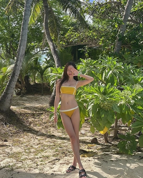공개된 사진에는 노란색 튜브톱 비키니를 입고 다양한 포즈를 취하고 있는 고성희가 담겼다.