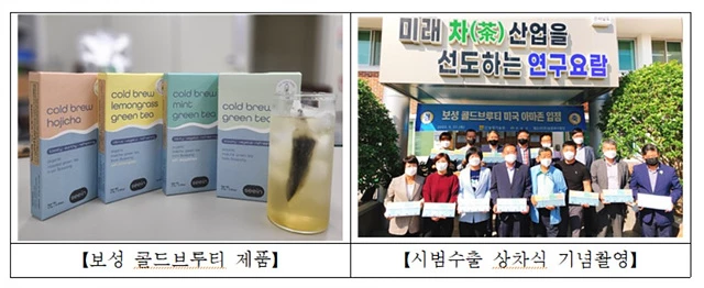 전남도농업기술원은 지난달 31일 차 제조·수출 전문업체인 월드티(주)농업회사법인과 공동연구를 통해 개발한 ‘콜드브루티’ 4종을 미국 아마존에 입점하고 시범수출 상차식을 가졌다고 2일 밝혔다.