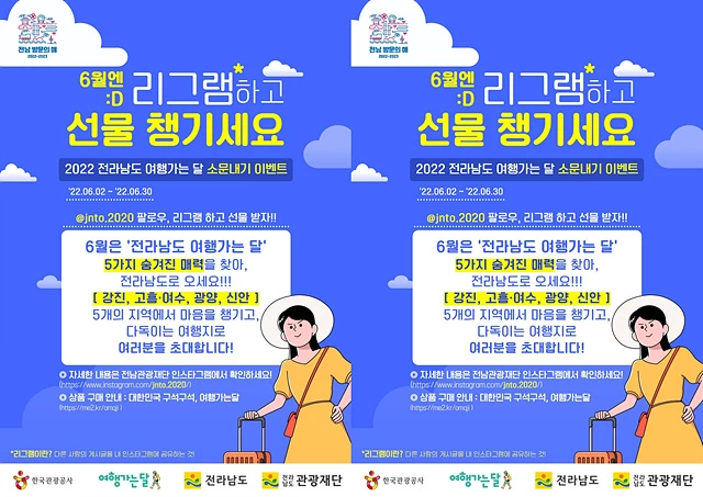 ‘여행가는 달’ 이벤트는 (재)전라남도관광재단 인스타그램에서 자세한 내용을 확인할 수 있다.