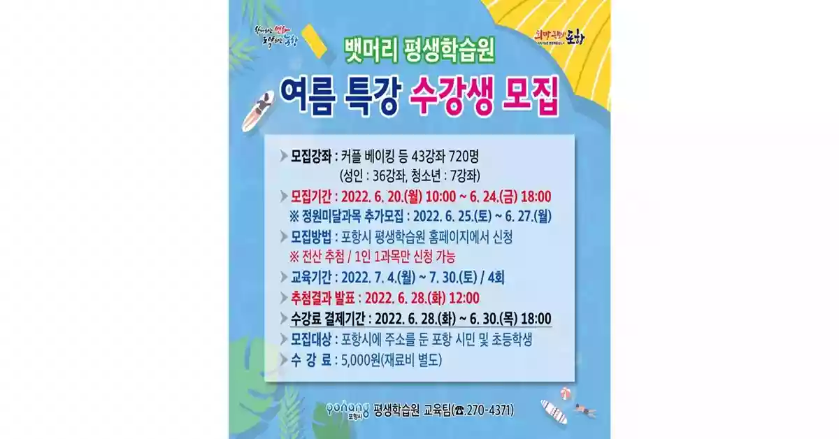 경북 포항시 뱃머리 평생학습원 여름 특강 수강생 모집 홍보 포스터 / 포항시 제공