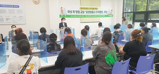 강진군에서 출산‧육아‧가족 구성원의 돌봄 등 다양한 사유로 경력이 단절된 여성의 취‧창업을 지원하기 위해 자격증반 과목 수요 조사를 실시해 요양보호사 자격증반을 개설했다.