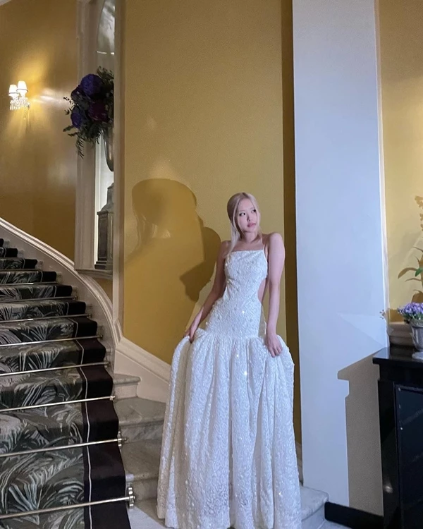 로제는 10일 자신의 인스타그램에 흰 드레스를 입은 사진과 영상을 게재했다.
