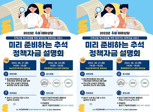 광주시 광산구 기업주치의센터가 ‘정책자금, 미리 준비합시다!’를 주제로 지역 중소기업을 대상으로 6월 테마상담을 개최한다.