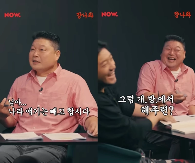 강호동은 당황한 표정으로 "나라 얘기는 빼고 합시다. 우리끼리 정부 얘기는 좀 그렇다. 개인 방송에서 해달라"라고 말해 웃음을 자아냈다.