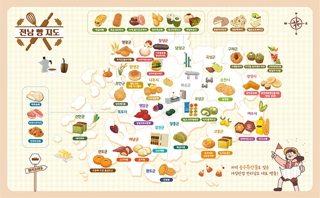 전라남도(도지사 김영록)가 지역 농수특산물을 원료로 만든 매력 만점 지역특화 빵을 관광과 연계하면서 판촉하기 위해 ‘전남 빵지순례도’를 제작, 본격적인 홍보에 나섰다.