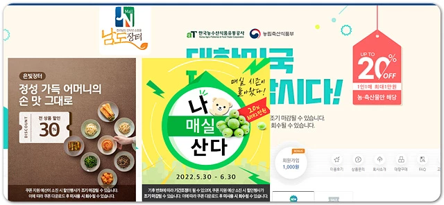 남도장터에 접속하면 농축산물을 최대 1만 원 범위에서 20% 할인하는 쿠폰을 지급한다. 27일 이전까지 1인 1매씩 받을 수 있고, 30일까지 추가로 한번 더 혜택을 볼 수 있다.