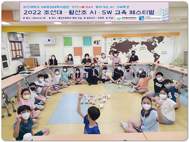 호남 최초 소프트웨어 중심대학인 조선대학교 SW중심대학사업단이 STEAM 선도학교인 광주월산초등학교 학생들을 대상으로 ‘2022 AI·SW STEAM 페스티벌’ 프로그램을 운영하고, 성공리에 마무리했다.