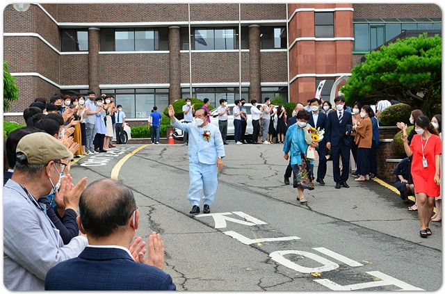 퇴임식을 마치고 시교육청 직원들은 교육청 현관에 나와 장 교육감의 마지막 길을 정문까지 배웅했다.