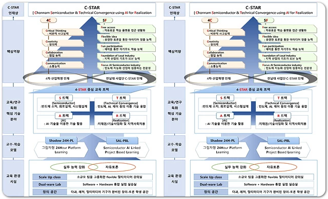 전남대 사업단은 특히 혁신적인 ‘4-STAR 융합 연구-교육시스템’을 통해 다학제·다조직간 융합을 통해 인공지능 반도체 산업에 필요한 석·박사 연구 인력을 배출함으로써, 광주시와 전남도가 구체화하고 있는 AI 반도체 특화단지 조성에도 크게 기여할 전망이다.