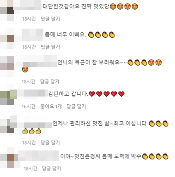 해당 사진이 공개되자 누리꾼들은 최은경 인스타그램에 "대단한 것 같아요. 진짜 멋있다", "몸매 너무 이뻐요", "복근이 참 부러워요", "감탄하고 갑니다", "언제나 관리하신 멋진 삶. 최고", "몸매와 노력에 박수" 등 반응을 보였다.