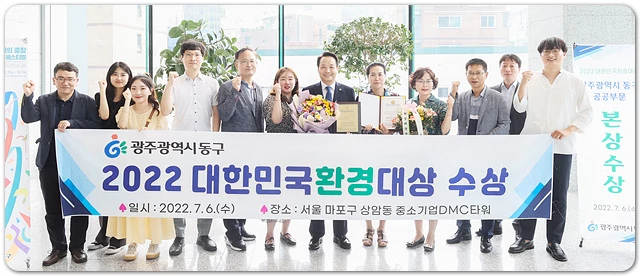 광주시 동구(청장 임택)는 지난 6일 서울 마포구 상암동 중소기업 DMC타워에서 개최한 ‘2022 제17회 대한민국환경대상’에서 ‘공공부문 스마트 그린시티 분야’ 대상을 수상하는 영예를 안았다고 밝혔다.