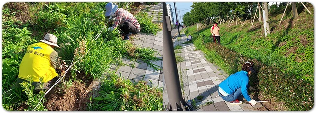 광주시 광산구 도산동 통장단(단장 박창곤)이 최근 주민, 통장 등 20여 명과 함께 마을 대표 산책로인 ‘도루메 힐링로드(장록교~도산우방2차 후문)’ 환경 정비 활동을 실시했다. 참여자들은 ‘도루메 힐링로드’ 500m를 걸으며 탐방로 주변 풀을 베고, 쓰레기를 수거했다.