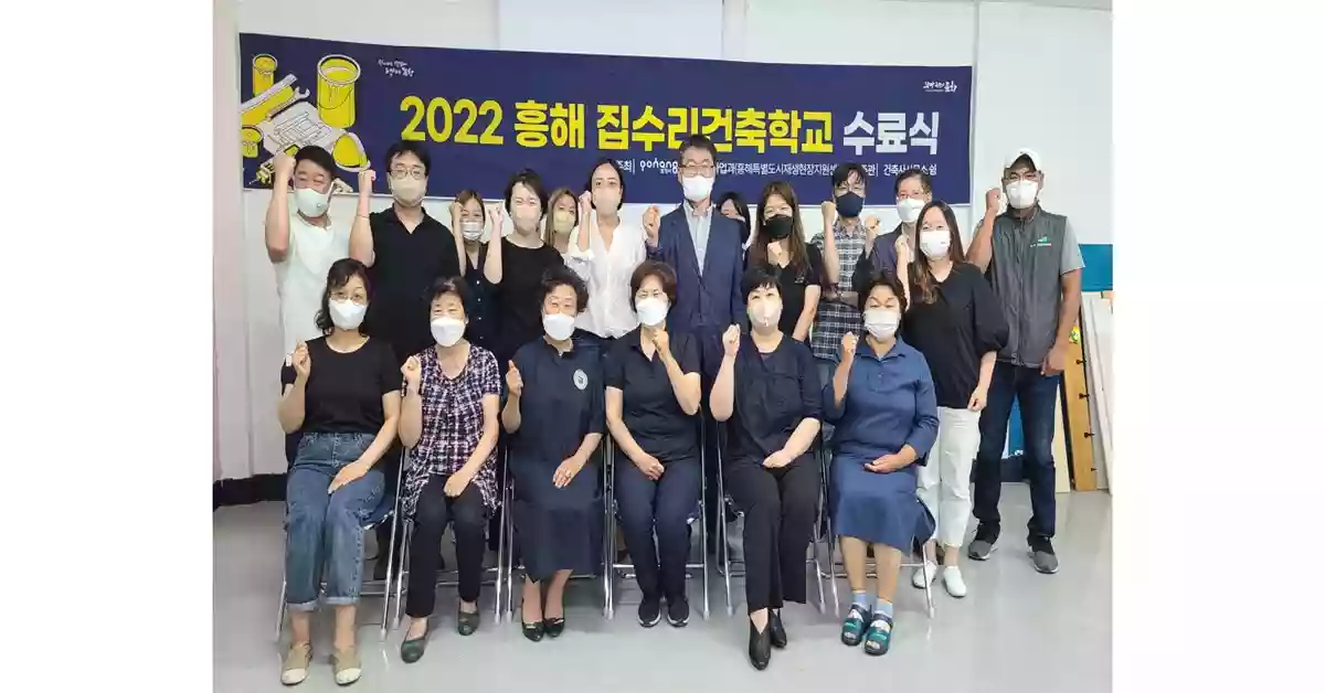포항시 흥해특별도시재생현장지원센터는 지난 7일 흥해 지진피해지역 특별 도시재생 뉴딜사업의 일환으로 진행된 흥해집수리건축학교 ‘도배전문가 과정’ 수료식을 가졌다.