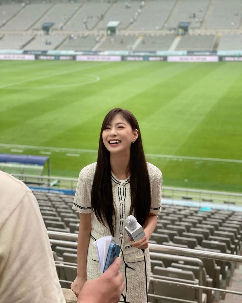 오하영은 이날 스페셜 리포터로 참여했다. 마이크를 든 채 손흥민에게 소감 등을 물었다. 전문 리포터 못지않게 능숙한 진행을 보여줬다. 다소 긴장한 듯한 모습도 엿보였다.