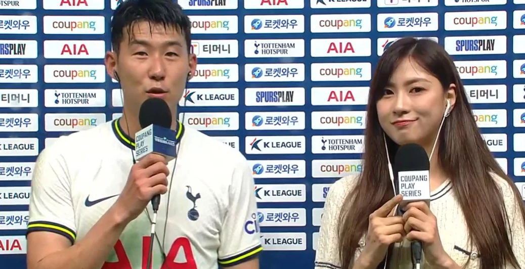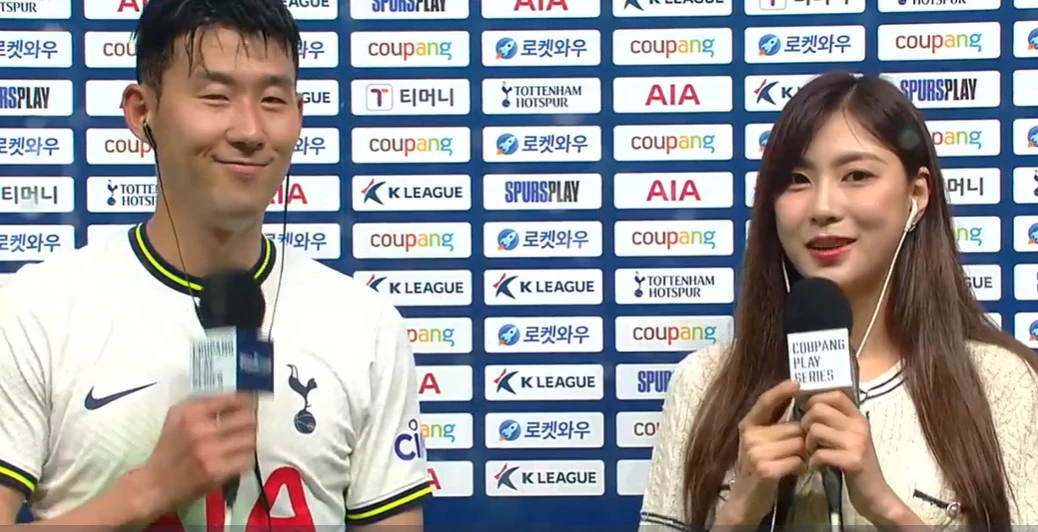 토트넘 대 팀 K리그 경기 직후 손흥민 인터뷰한 여성