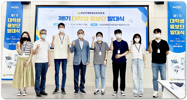 (재)전남인재평생교육진흥원(원장 고석규)은 13일 진흥원 배움마루에서 전남 인재육성과 평생교육에 대한 누리소통망(SNS) 홍보 역할을 할 제1기 대학생 홍보단 발대식을 가졌다.