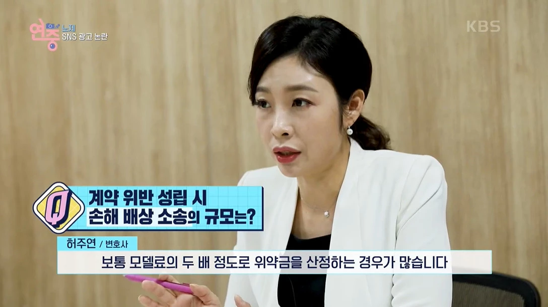 이날 '연중 라이브'에서는 노제가 중소기업 브랜드와 계약 기간을 지키지 않았을 때 기업에서 손해 배상을 신청할 수 있는지와 규모가 어느 정도인지 알아봤다. 허주연 변호사는 "연예인이 광고 계약할 때 가장 중요한 요소는 광고 기간을 설정하는 것"이라며 "명시된 계약 기간을 지키지 않았다면 계약 위반이 성립한다"고 말했다.