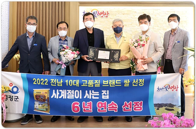 영광군(군수 강종만)은 지난 13일 전라남도가 주최한 2022년 전남 10대 고품질 브랜드 쌀 시상식에서 “사계절이 사는 집” 브랜드가 6년 연속 수상하는 영예를 안았다고 밝혔다.