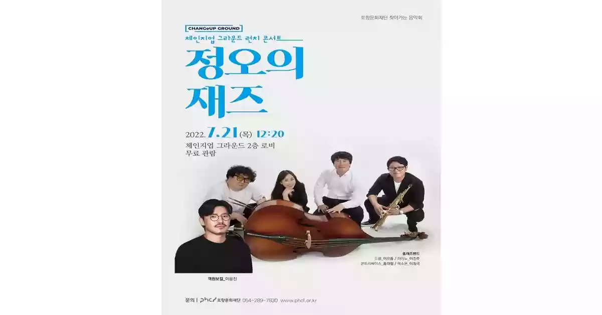 경북 포항문화재단은 오는 21일 오후 12시 20분 체인지업그라운드(포항창조경제혁신센터) 2층 로비에서 체인지업 그라운드 런치 콘서트 ‘정오의 재즈’ 를 개최한다.