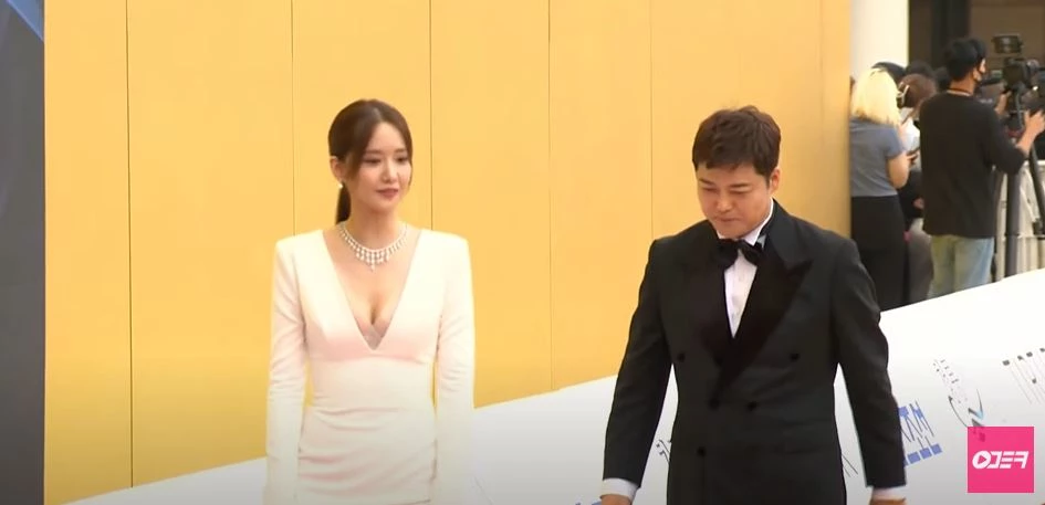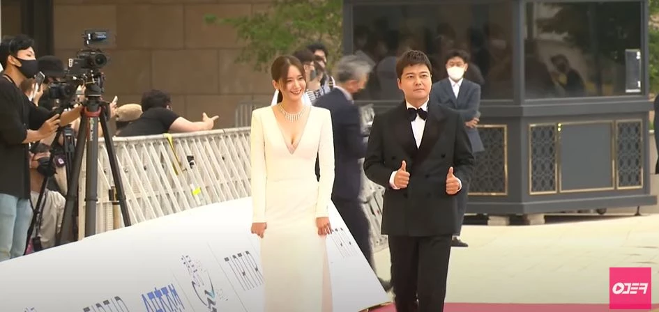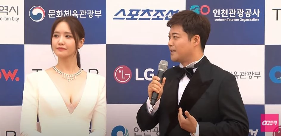 배우들이 차례로 거쳐간 후 대형 벤이 도착했다. 차량엔 이번 시상식의 진행자인 방송인 전현무와 소녀시대 윤아가 타고 있었다.