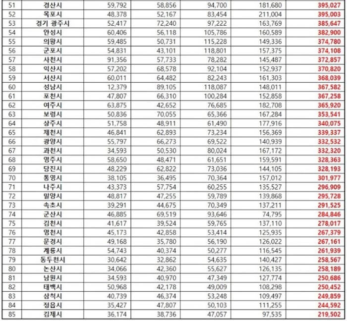 한국기업평판연구소는 지난 21일 '7월 대한민국 도시 브랜드평판' 1위부터 85위까지 순위를 공개했다.