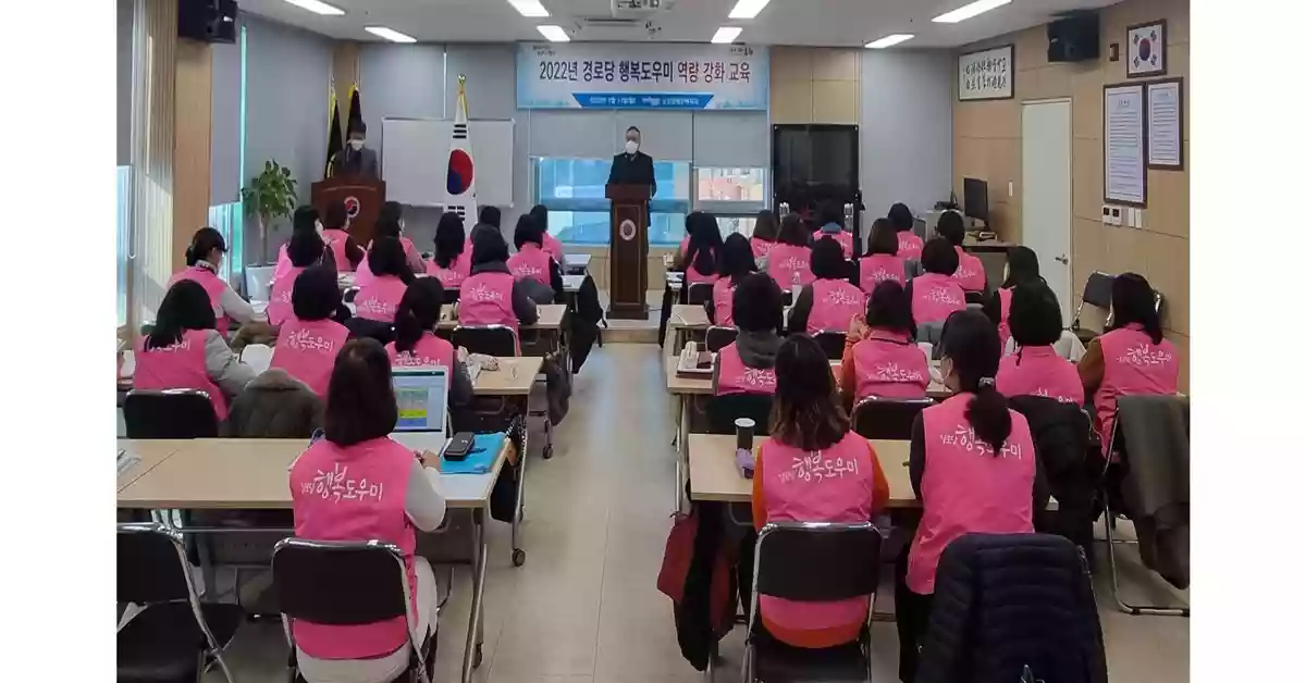 이에 더해 지난해 12월 사회복지사, 레크리에이션, 생활체육 등 분야의 전문성을 갖춘 경로당행복도우미 36명을 채용해, 1인당 17개소 담당 및 매일 4개소 방문으로 맞춤형 프로그램과 유익한 정보 제공, 경로당 안전점검, 복지코디 등의 역할을 수행하며 경로당 활성화에 기여하고 있다.