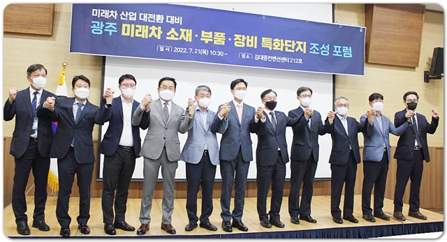 광주광역시 김광진 문화·경제부시장은 인사말에서 “국내외 자동차 시장이 빠르게 미래차로 전환되고 있어, 광주의 핵심 주력 산업인 자동차 산업을 친환경, 디지털, 서비스화 등 3대 메가 트렌드가 접목된 미래차 중심의 산업으로 서둘러 재편해야 할 때다.”고 강조하였다. 이어 “미래차 소부장 특화단지 조성으로 미래차 전용 산단을 조성하여 국내외 유수 기업을 유치하는 등 전후방 연관 기업의 동반성장 생태계를 구축할 방침이다.‘고 밝혔다.
