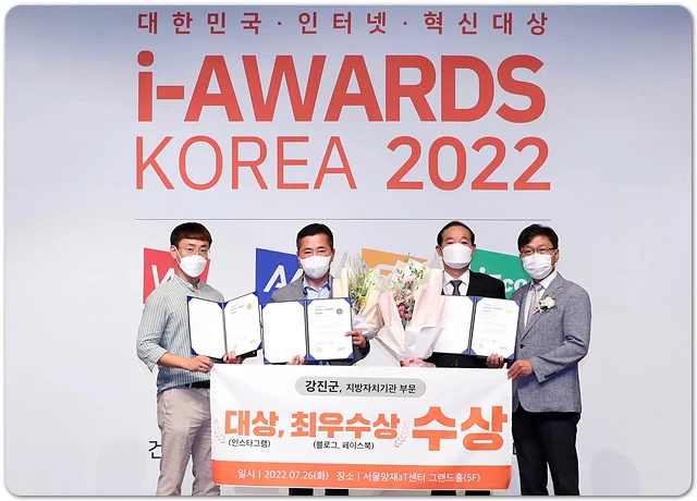 강진군이 한국인터넷전문가협회가 주관하는 ‘소셜아이어워드 2022’ 지방자치기관 인스타그램 부문에서 대상을 수상했다.