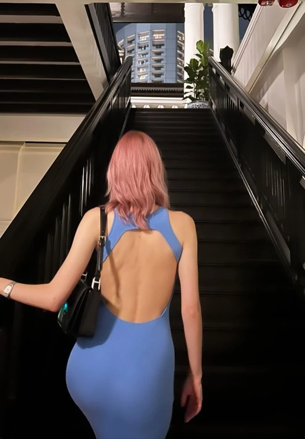 이어 스테파니는 등이 훤히 드러난 드레스를 입고 우월한 몸매를 뽐내 시선을 사로잡았다.